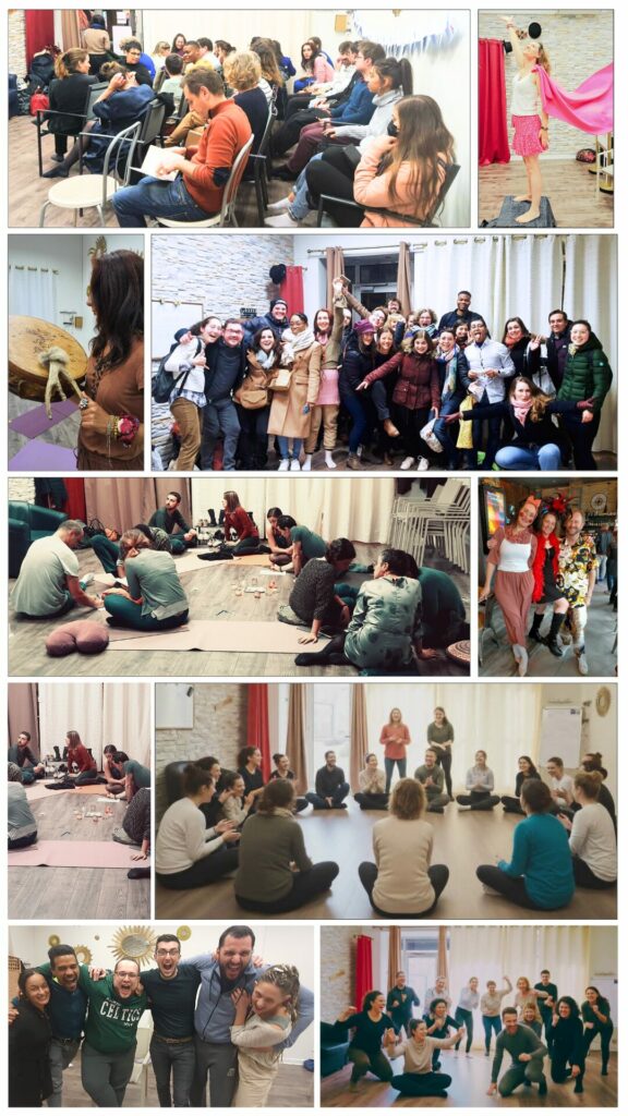 Le théâtre d’improvisation est utilisé comme outil de lâcher prise, mais aussi de developpement personnel afin de travailler la confiance en soi, la connaissance de soi, l’affirmation de soi. Les cours d’essai ont lieu les jeudis de janvier – premier cours : jeudi 8 janvier à 19h – UN WEEK END COMPLET EST PREVU POUR TOI